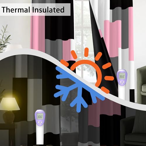 Tyrot Pink Black and Grey Blackout Curtains, 52×84