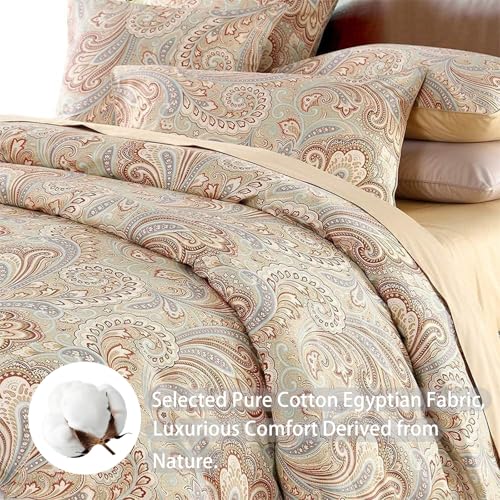 USTIDE Egyptian Cotton Duvet Cover Set King Size 3 Piece – Gold Paisley Floral Luxury Bedding Set Premium 400 Thread Count, Wrinkle Resistant & Breathable