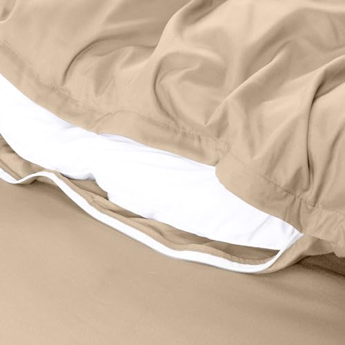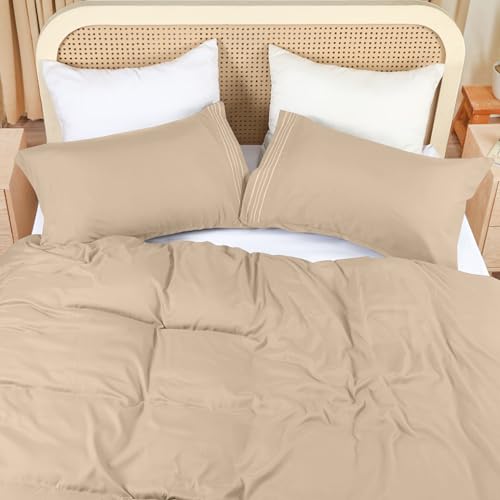 Utopia Bedding Double Duvet Cover Set – Duvet Cover Double with Embroidered Pillowcases – Soft Microfibre Polyester Bedding (Beige)
