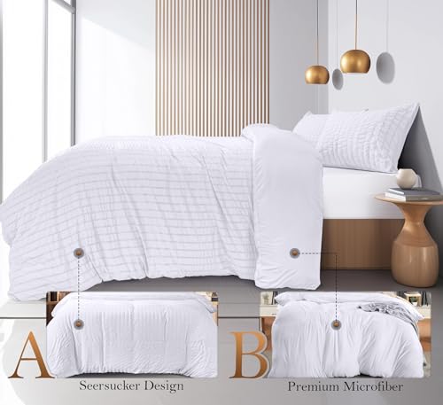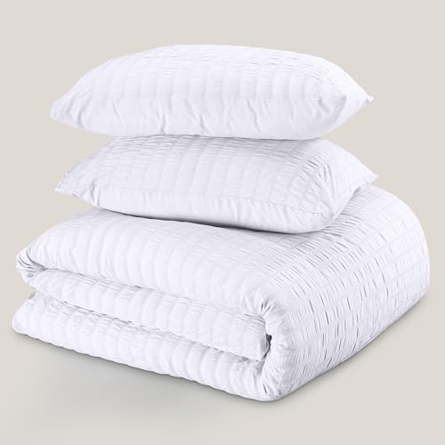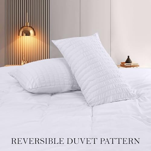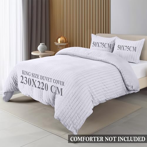 Utopia Bedding Seersucker Duvet Cover – King Size Duvet Cover Set with Pillowcases – Soft Microfibre Polyester Seersucker Bedding (White)