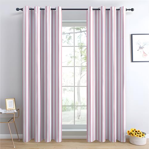 Venivici Pink and White Striped Blackout Curtains for Bedroom Living Room – 54 Inch Drop Curtains Eyelet, Stripes Window Treatments, Thermal Insulated Drapes for Windows C&-182