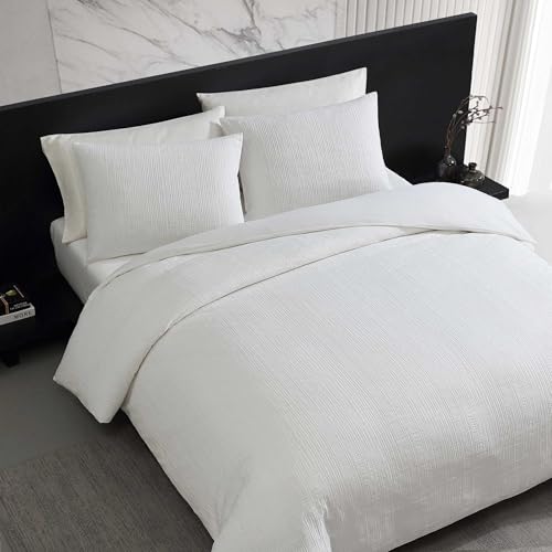 Vera Wang – Duvet Cover Set, Super Soft Textured Bedding with Matching Shams, Chic Room Essentials (Bark White, King)