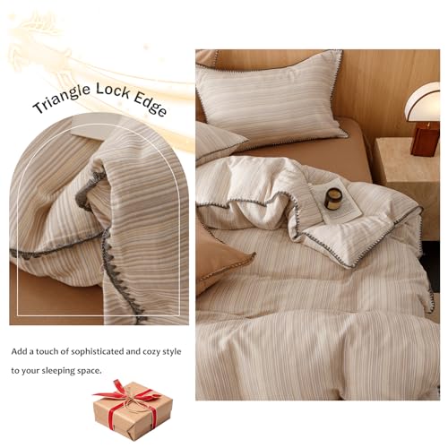 VM VOUGEMARKET Linen Duvet Cover King Striped Pattern Yarn Dyed Muslin Cotton Duvet Cover with Embroidered Edge Super Soft Cozy Bedding Set for Men Women,King Size
