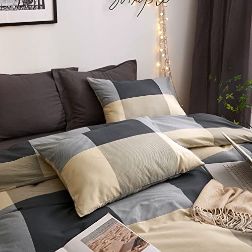 VM VOUGEMARKET Plaid Duvet Cover King,Black Gray Checkered Bedding Set with Zipper Ties,Simple Luxury Boys Men Comforter Cover Set Soft Cotton Home Bedding-104×90