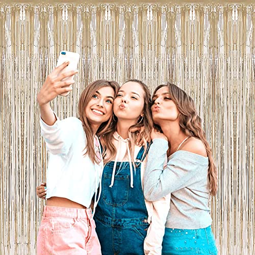 VReder Champagne Gold Glitter Backdrop Curtain, Metallic Tinsel Foil Fringe Curtains, Party Streamers Backdrop for Birthday Engagement Weddings Parties Holiday Decoration 2pcs 1m x 2.5m