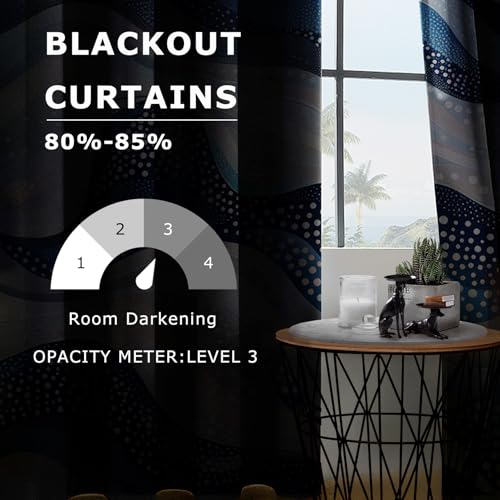 Wavy Pattern Curtains – Wavy Curtains – Abstract Wave Ripple Blackout Curtains 46 x 54 Inch (Width x Drop) 2 Panels, Geometric Ocean Wave Eyelet Curtains & Drapes