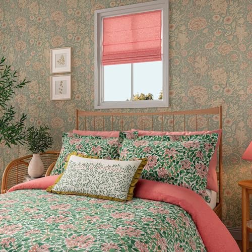 - William Morris Honeysuckle Bedding in Evergreen & CoralBedding: Duvet Cover & 2 Oxford Pillowcase Set, Double 200x200cm