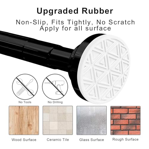 wintfarm Extendable Shower Curtain Poles 48-200 cm,No Drill Tension Rod Adjustable Shower Curtain Rail,Non-Slip,Never Rust,304 Stainless Steel,for Bathroom,Kitchen,Garderobe,Balcony(Black)