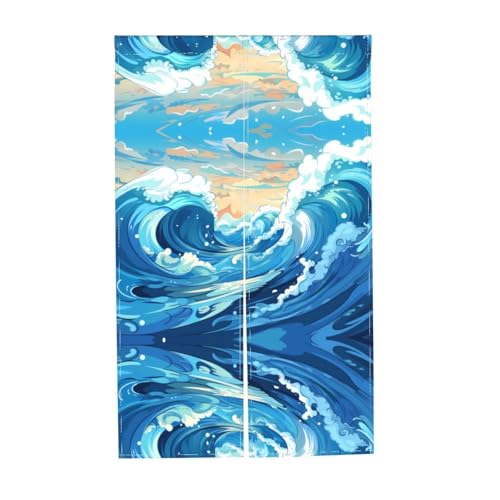 WZYWHJ Cartoon Blue Waves Printing Curtains – Versatile Room Dividers for Home, Office, Kitchen, Bathroom – Stylish and Functional Curtain 34 x 56 in