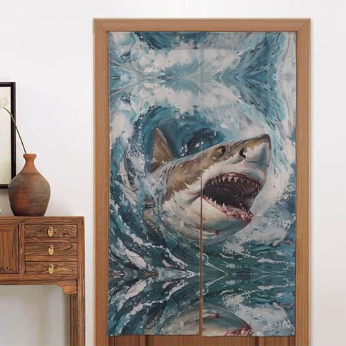 WZYWHJ Shark in The Waves Printed Curtains – Versatile Room Dividers for Home, Office, Kitchen, Bathroom – Stylish and Functional Curtain 34 x 56 in