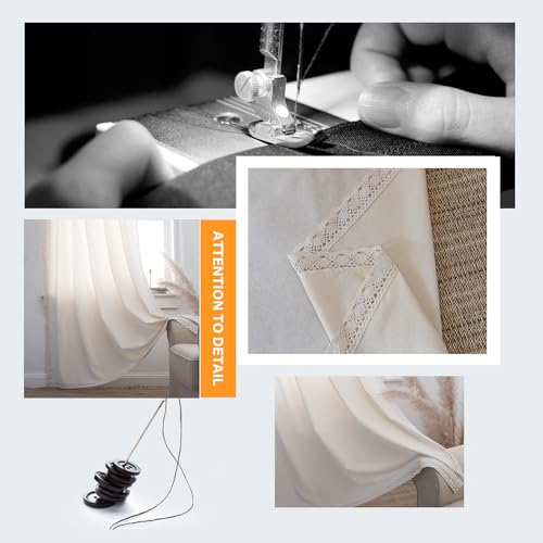 XCLOOZGL Solid Color Semi-Blackout Cotton Linen Window Curtains Textured Window for Living Room Simple Lace Decorative Drapes Rod Pocket Pinch Pleat Soft Touch Light Airy Curtains,Beige,W150xL120cm