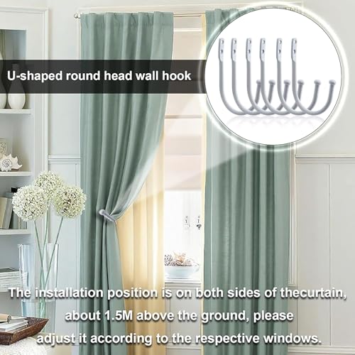 6 PCS Curtain Tie Backs Hooks, Drapery Holdbacks Metal Tie Back Hook with Screws U-Shaped Window Curtain Holder Wall Mounted for Decorative Curtains (White)