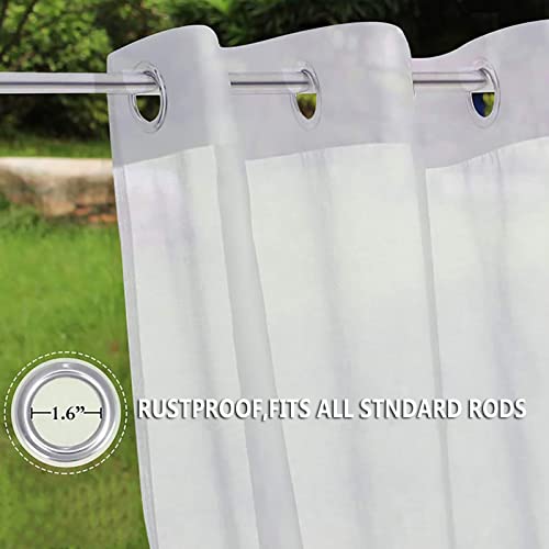 XQKXHZ 2 Panels Outdoor Sheer Curtains for Patio Waterproof White Semi Sheer Curtains Light Filtering Chiffon Voile Drapes for Bedroom Living Room Porch Pergola Cabana,52" W x84 L