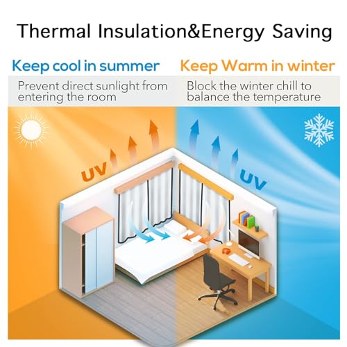 - ENERGY SAVING:These classic blackout panels keep heat indoors in winter and discharge heat in summer, thereby reducing the cost of refrigeration and heating while protecting your furniture, flooring and artwork from the sun damage. The deeper the color, the stronger the light blocking ability. Widely use for bedroom, living room, dining room, kitchen, kids room, patio door, and even office.