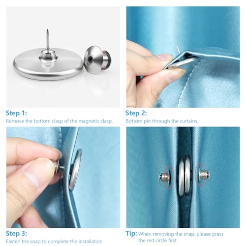 - [Ideal Curtain Accessories] Needle fixing design enables it to install and remove without harming your curtains. Package includes 20 pairs of curtain magnet buttons with transparent storage box. You can always reach out to us if you have any inquiries about how to use them!