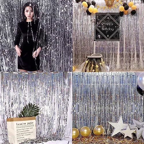 - 【Widely Use】 These beautiful tinsel curtains are good for serving as party decorations, photography backdrops, and so on; They are perfect for any theme party such as new years Christmas birthday wedding party nye decorations, they are also suitable for ceremony, stage background, disco party decorations, baby shower, bridal shower, Bachelorette party, DIY photo booths backdrop, mamma mia party, gatsby decorations