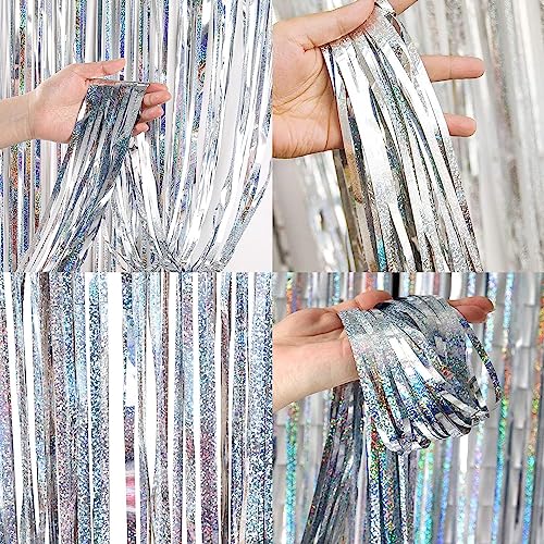 YIAGUN 2 Pack Silver Foil Curtains 1×2.5m Thick Laser Flash Tinsel Tassel Curtains Drag Cable Background Decoration Birthday Studio Props Graduation Engagement Party