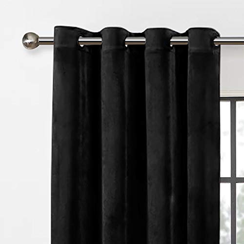 Yorkshire Bedding Blackout Curtains 66 x 72, Room Darkening, Black Eyelet Crushed Velvet Curtains for Living Room & Bedroom, 168cm x 183cm, Black