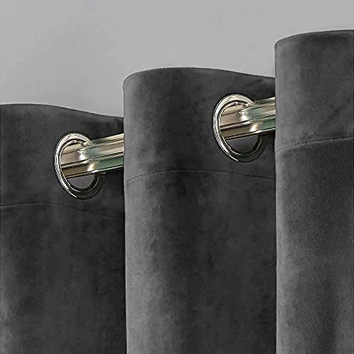 Yorkshire Bedding Blackout Curtains Room Darkening Eyelet Crushed Velvet Curtains For Living Room Pair Panels Fully Lined Window Curtains + Tie Backs (Grey, 90x 90 (228cm x 228cm))