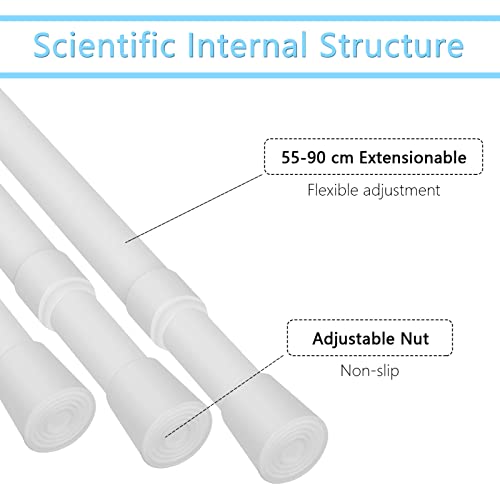 Youyijia Shower Curtain Pole, 55-90cm Extendable Curtain Poles, Net Curtain Rod, No Drill Curtain Poles Extendable Curtain Pole Adjustable Telescopic Voile Tension Rod for Cupboard Bathroom Window