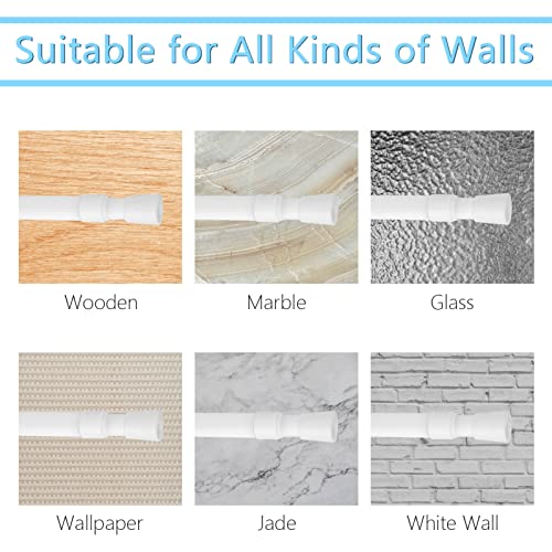- [Easy Installation]: Retractable curtain rods require no tools or fixtures, no screws, glue, or holes that will not damage walls, doors, windows, or cabinets. Spring curtain rods hold securely when clamped between two walls or any other surface and have non-slip end caps that won't come off easily.