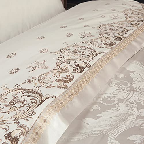 Zangge Bedding Luxury Satin Jacquard Embroidered 4pcs Double Size Bedding Sets Include 1 Duvet Cover 1 Flat Sheet 2 Pillowcases