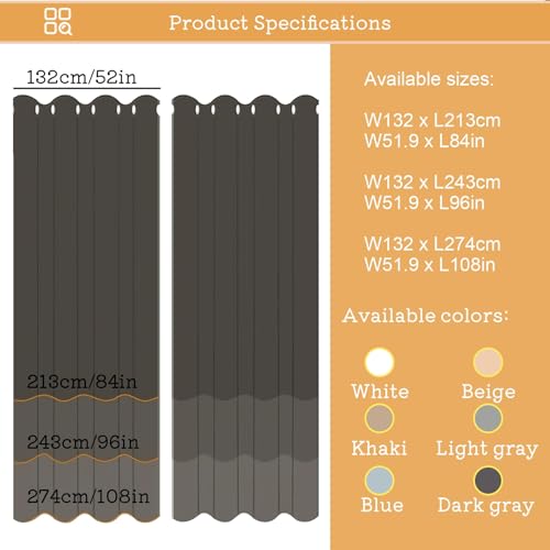 - Multiple sizes available: Contains 2 pieces outdoor sheer curtains, each piece is 132cm wide (52 inches), and the height is available in three options: 213/243/274cm (84/96/108 inches). The top is equipped with a 4cm (1.6-inch) diameter stainless steel ring, which is suitable for various standard curtain rods and suitable for a variety of installation environments