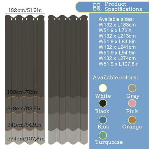 - Multiple specifications to choose from: Each set contains 2 pieces porch curtains, the size of a single piece is 132cm wide (52 inches), and the height is available in a variety of specifications of 183/213/241/274cm (72/83.8/94.9/107.8 inches) to meet the needs of different spaces, and flexible matching is more worry-free