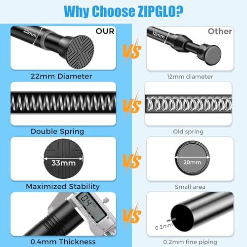 Zipglo Shower Curtain Pole 78-197cm, Black Extendable Curtain Poles Adjustable Tension Rods for Curtains Telescopic Curtain Poles No Drilling Shower Curtain Rail for Bathroom Bedroom Window Closet