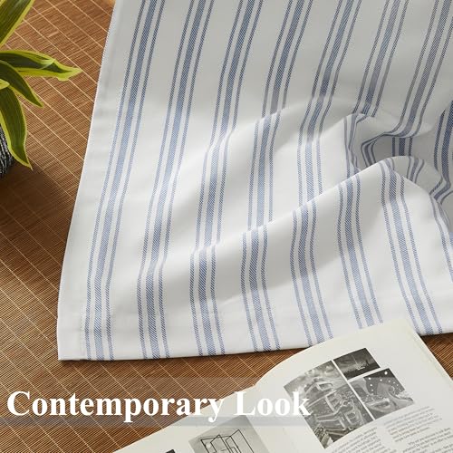 ZJDECOR Blue Striped Blackout Curtains 84 Inches Length,Ticking Stripe on White Cotton Blended Light Filtering Fabric with White Liner,Modern Bedroom Window Treatment,Back Tab Rod Pocket,55" Wx84 Lx2